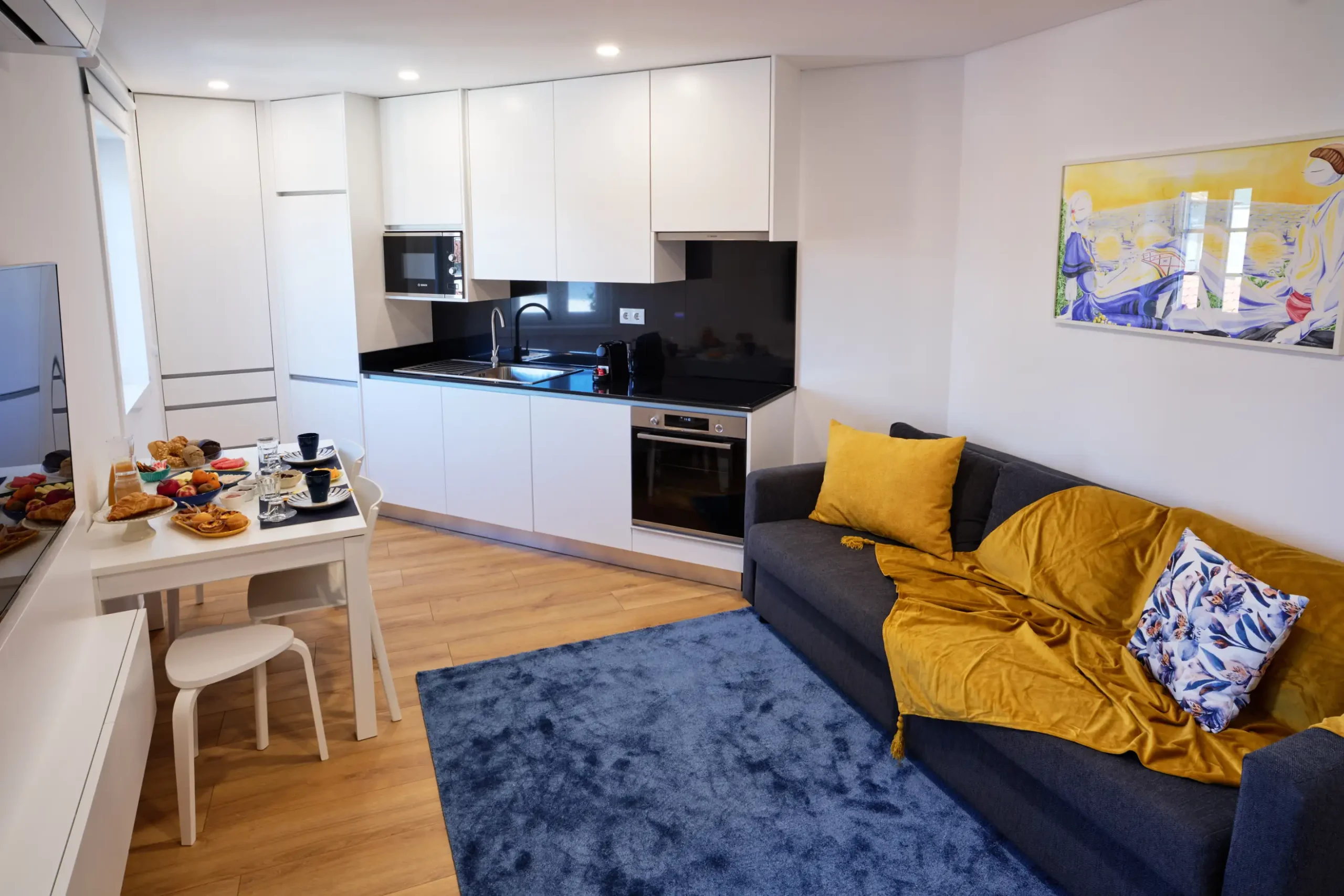 O Mponto dispõe de três apartamentos, tipologia T1 e T2, equipados com todas as comodidades modernas para garantir uma estadia confortável e relaxante. Cada unidade dispõe de uma sala de estar acolhedora, cozinha totalmente equipada, quarto espaçoso e casa de banho privativa. O Mponto tem ainda à disposição do cliente um parque automóvel privativo e com postos de carregamento para viaturas elétricas.